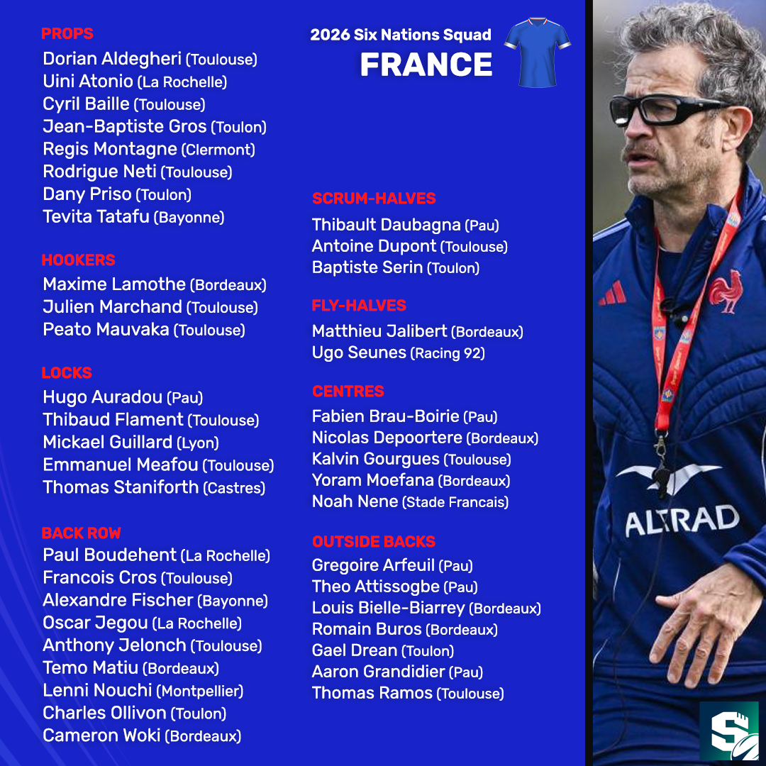 Defending champions France should be strong again in 2026, but Fabien Galthie has sprung some surprises with his squad.Gregory Alldritt, Gael Fickou and Damian Penaud have each been left out of his 42-man roster.