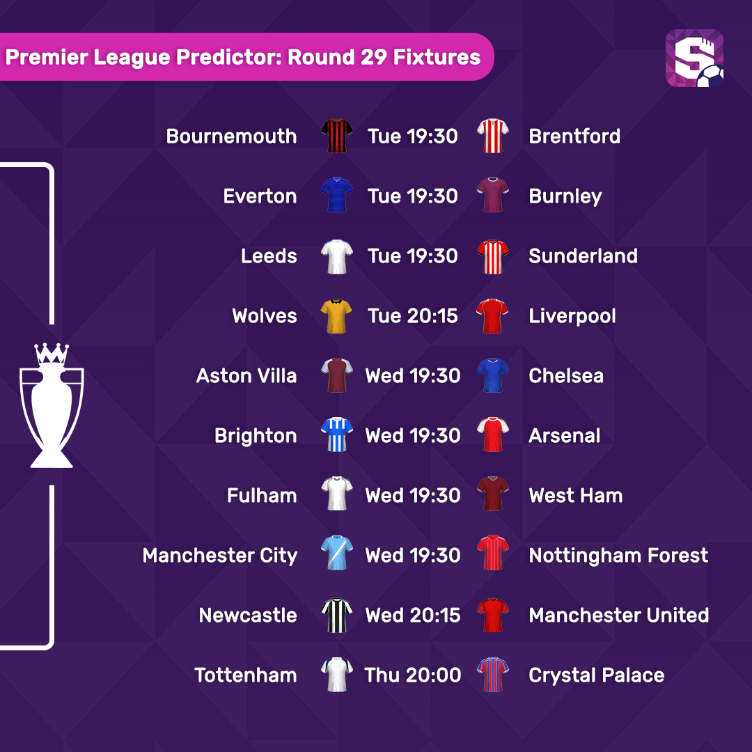 Round 29 is a midweek round beginning this evening so make sure you spread the word so that everyone in your league remembers to make picks! 3 fixtures kick-off at 19:30 UK tonight.